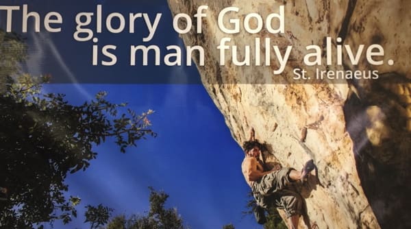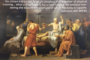 Entonces, qué alivio tuve cuando el presidente de la AFC me invitó a usar el gimnasio privado de la AFC. Ser capaz de aclarar mi mente y darle energía fresca a mi cuerpo a través del ejercicio fue un gran regalo. Mientras me daba un recorrido por esta instalación (y es bastante grande), mis ojos se dirigieron de inmediato a una gran pancarta de un Sócrates robusto y controlado (469 - 399 aC) en sus momentos finales antes de beber voluntariamente la cicuta emitida como su forma de ejecución. Por encima de lo cual estaban sus palabras: "Ningún ciudadano tiene derecho a ser un aficionado en materia de entrenamiento físico. . . qué vergüenza es para el hombre envejecer sin haber visto nunca la belleza y la fuerza de la cual su cuerpo es capaz ". Luego miré a otra pared del gimnasio y vi palabras de significado similar pero más profundo en otro cartel grande:" La gloria de Dios es el hombre plenamente vivo. "Estas son las famosas palabras de San