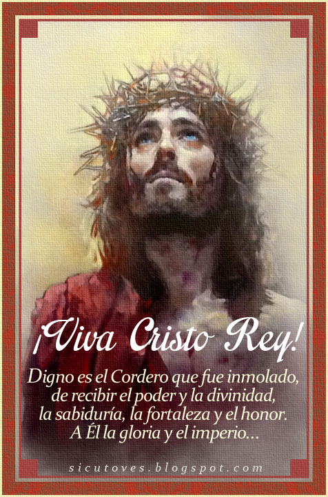"Sí, yo soy Rey", dijo Nuestro Señor Jesucristo a Pilatos, "Por eso precisamente ha nacido y venido a este mundo, para dar testimonio de la verdad". Es el Reino Divino de la Santa Iglesia, La vida a los ciegos, La libertad a los cautivos. Sus hijos tienen poder para hacer hijos de Dios, para vivir una vida divina, para gozar de la libertad; Aparta del yugo de Satanás y nos comunica los bienes sobrenaturales. Todo esto, en virtud de nuestra unión vital, de nuestra unidad de ser con Cristo, que es nuestra Cabeza, el Fundador de este Reino, el que lo hace con Sus Enseñanzas, con Sus ejemplos y, sobre todo, con Su muerte de Cruz .