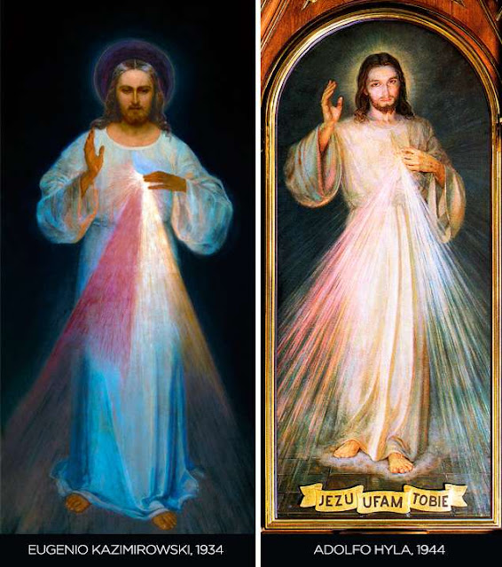 Por entonces el pintor Adolfo Hyla llegó a la casa cracoviana de la Congregación con la propuesta de pintar un cuadro como voto por haberse salvado en la guerra. Le dieron una estampa de la Divina Misericordia y las descripciones de Santa Faustina.