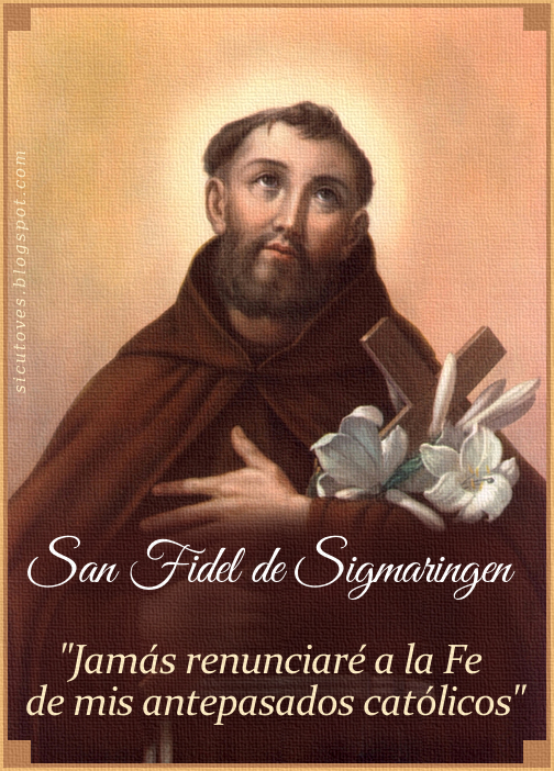 Al entrar en la Orden Capuchina, le dieron el nombre religioso de Fidel. El Santo terminó su noviciado y estudios para el sacerdocio; celebró su primera Misa en el Monasterio Capuchino en Friburgo, el 4 de Octubre de 1612, Fiesta de San Francisco de Asís, Fundador de la Orden.
