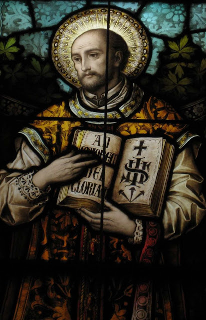 La lectura de la vida de los santos inspiró a San Ignacio el amor a la santidad. Renunció a la gloria de las armas para alistarse bajo el estandarte de Cristo, y para trabajar por la gloria de Dios y la salvación de las almas. Se retiró a la gruta de Manresa, en la que llevó una vida muy austera. Fue allí donde compuso su admirable libro de los Ejercicios espirituales. Comenzó a estudiar la lengua latina a la edad de 33 años, y durante su permanencia en la Universidad de París, atrajo a varios compañeros con los que echó las bases de la Compañía de Jesús. Murió en el año 1556.